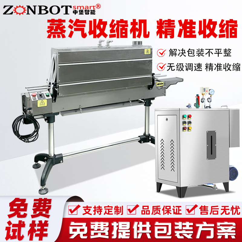 蒸汽收縮機是一種利用蒸汽熱能使包裝材料收縮,從而緊密貼合被包裝物品的設備。蒸汽收縮機通過將水加熱產生蒸汽,蒸汽在一定壓力下噴射到覆蓋在被包裝物品上的收縮膜上。收縮膜受熱后迅速收縮,緊緊包裹住物品,達到固定、保護物品以及美化包裝的目的。能快速產生大量蒸汽,使包裝膜迅速收縮貼合產品,可提高生產效率。蒸汽分布均勻,確保包裝膜在產品各個部位都能實現一致的收縮效果,包裝更加美觀、牢固。適用性強可用于 PVC、POF、PP 等多種常見的熱收縮膜,能適應盒子、瓶子等規則形狀以及其他不規則形狀產品的包裝。操作簡便設備操作
